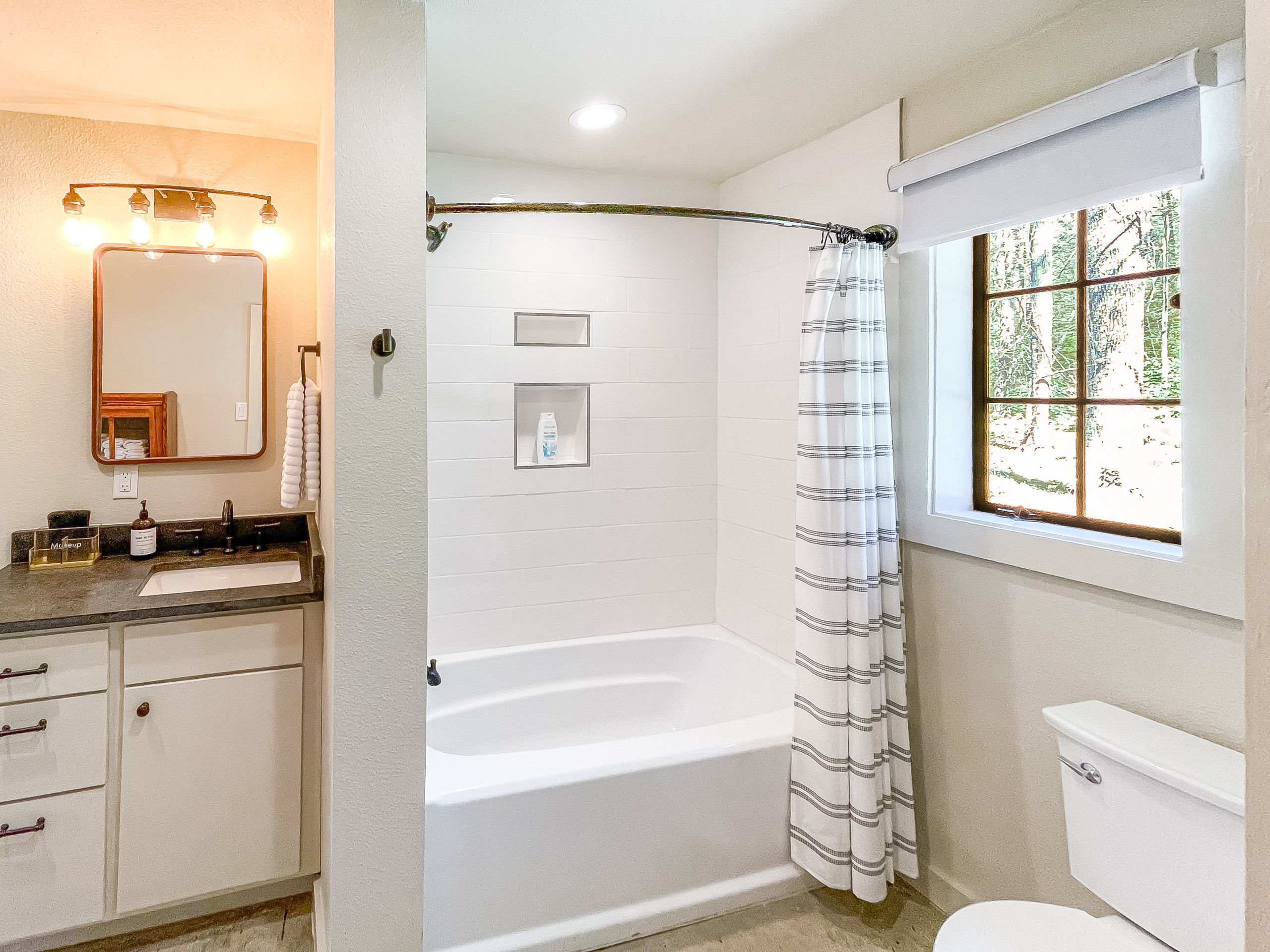 ~ Bathroom 1: full bath with tub combo - located with access to Bedroom #1 and great room
