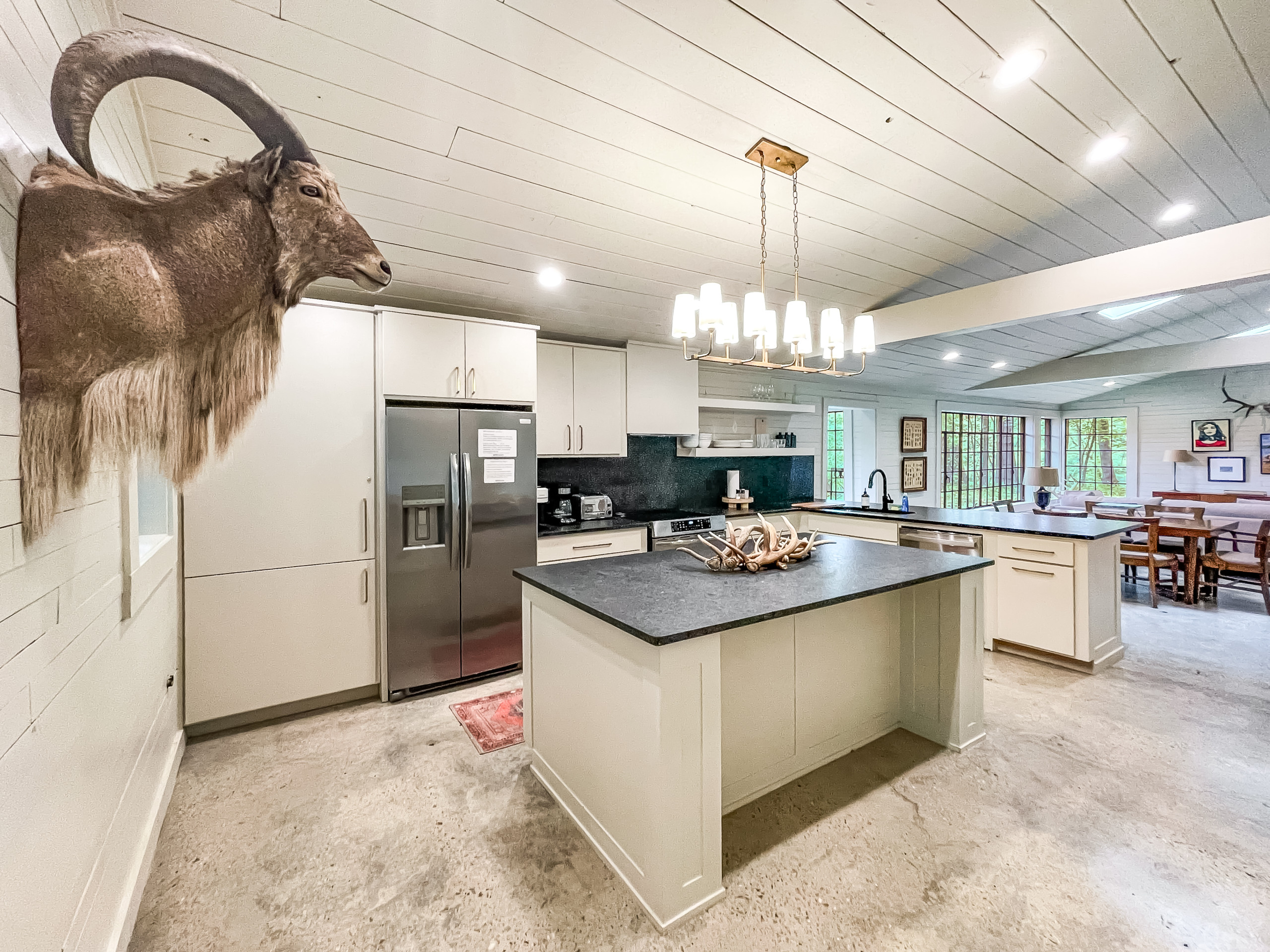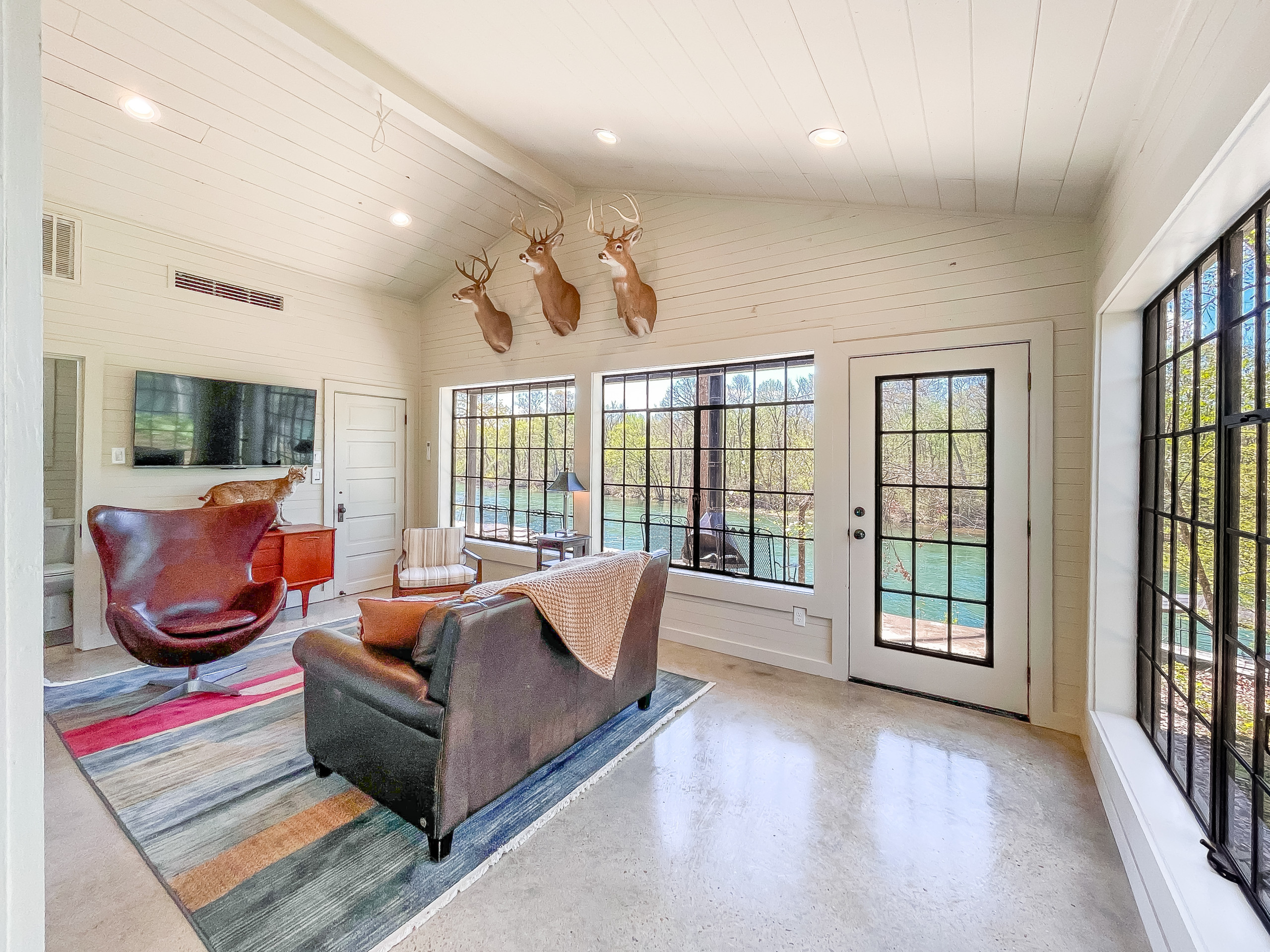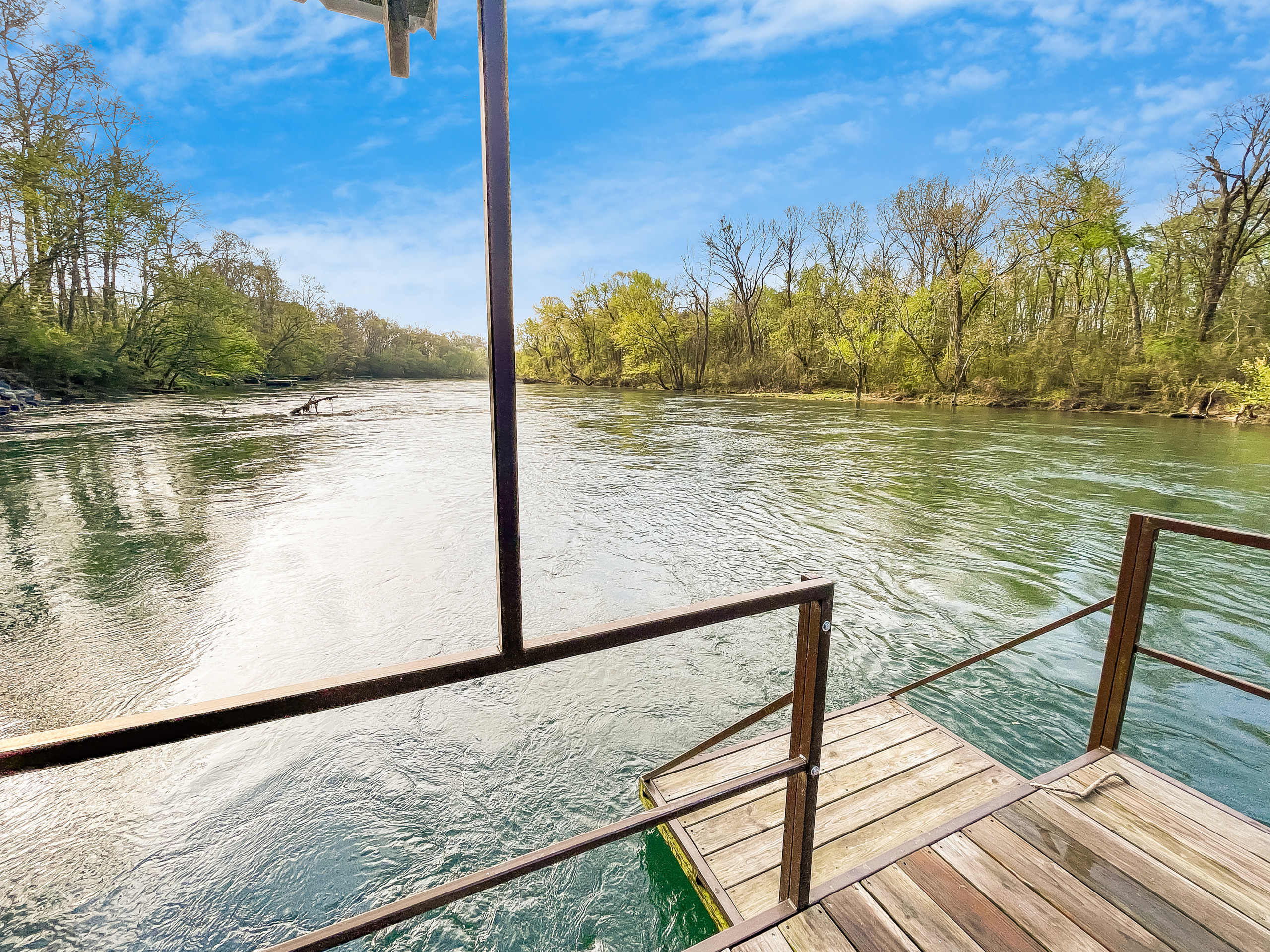 With a wide landscaped riverbank, this property is ideal for sunbathing and fly-fishing alike. There are no other cabins across the way and plenty of elbow room on the double shaded lot. MASTERFUL renovation inside and out Spring 2024. This place has comfort and soul + a gourmet lux kitchen featuring induction cooking. Within a couple of minutes are several public launches and hikes. (see Big Creek Rec area - oh wow). Choices of several nearby trout guides can come and pick you up on your dock. FIBER internet!