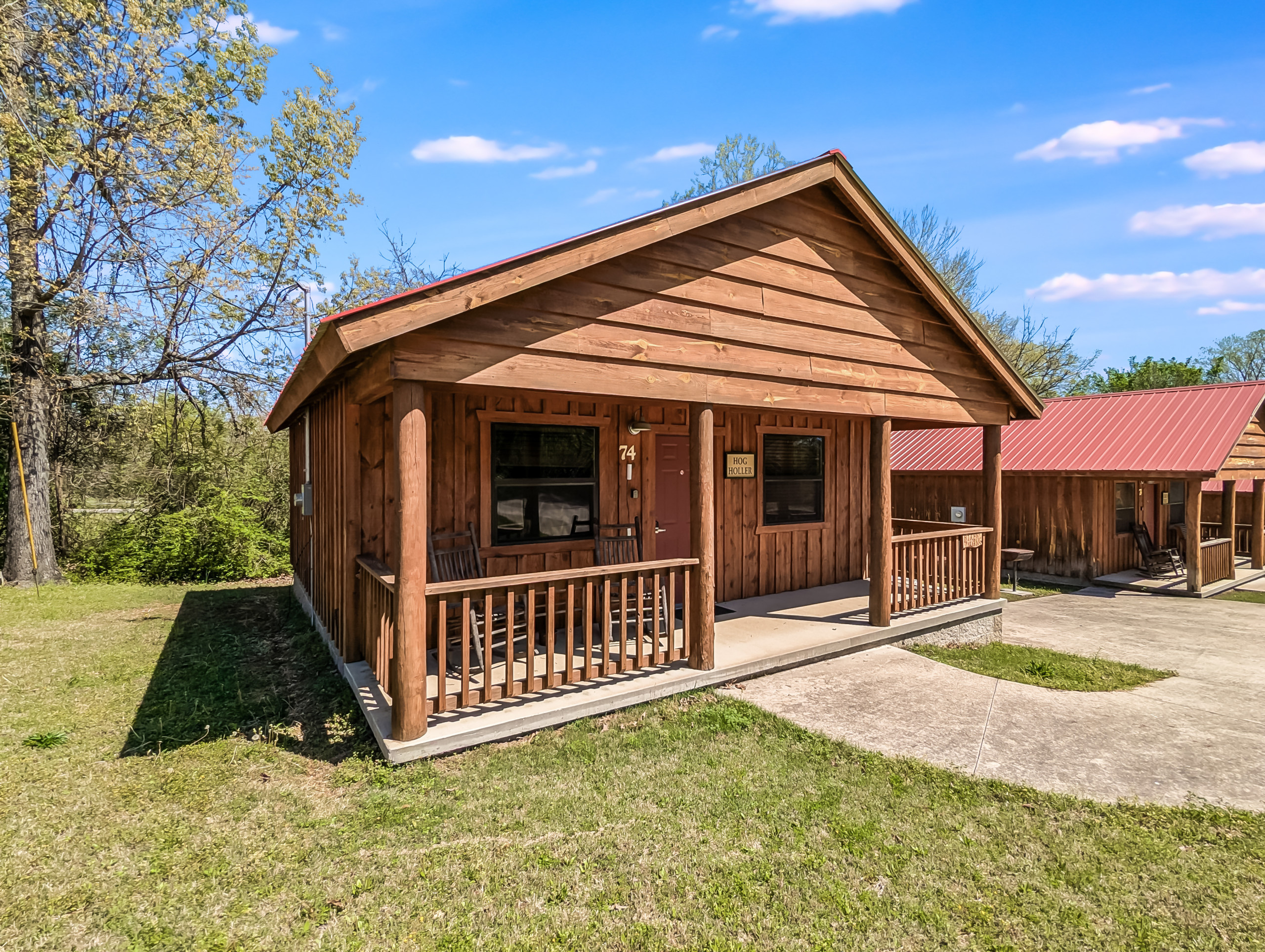 Just one block from the historic Mountain View courthouse, this cabin offers the perfect mix of cozy charm, comfortable amenities, and unbeatable location. On most temperate nights, you can hear the sweet sound of folk music drifting through the trees—an authentic Ozark experience just outside your door.