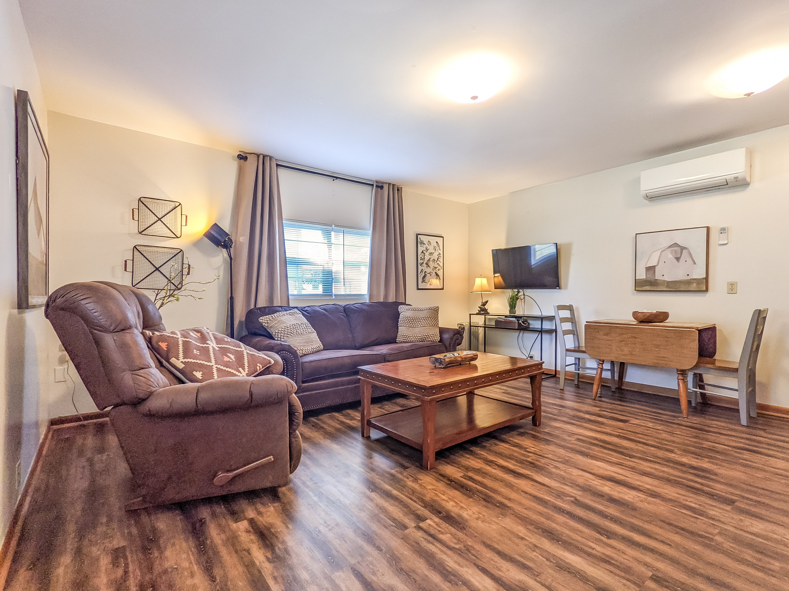 Lovely little one bedroom that is person for a couple or small group. Easy to find, easy access to the town. Furnishings were immaculate, and the living room decor is some of the best I've seen in a rental property. Stay here!