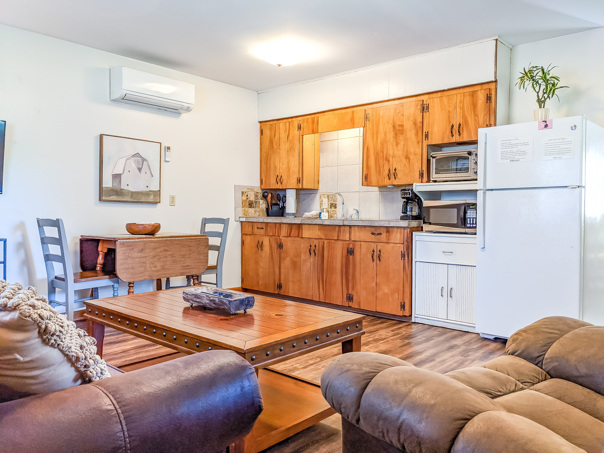 Good value, close to downtown and one of the few places in Mountain View that you can walk to the square without going updown a big hill. The cottage was clean and comfortable for 2. The living room had plenty of space, the bed was comfortable and the wi-fi worked well. There’s only space to park one car, no space to park a trailer. Ivy vacations provides good directions and good check-in instructions and are responsive to questions and requests.