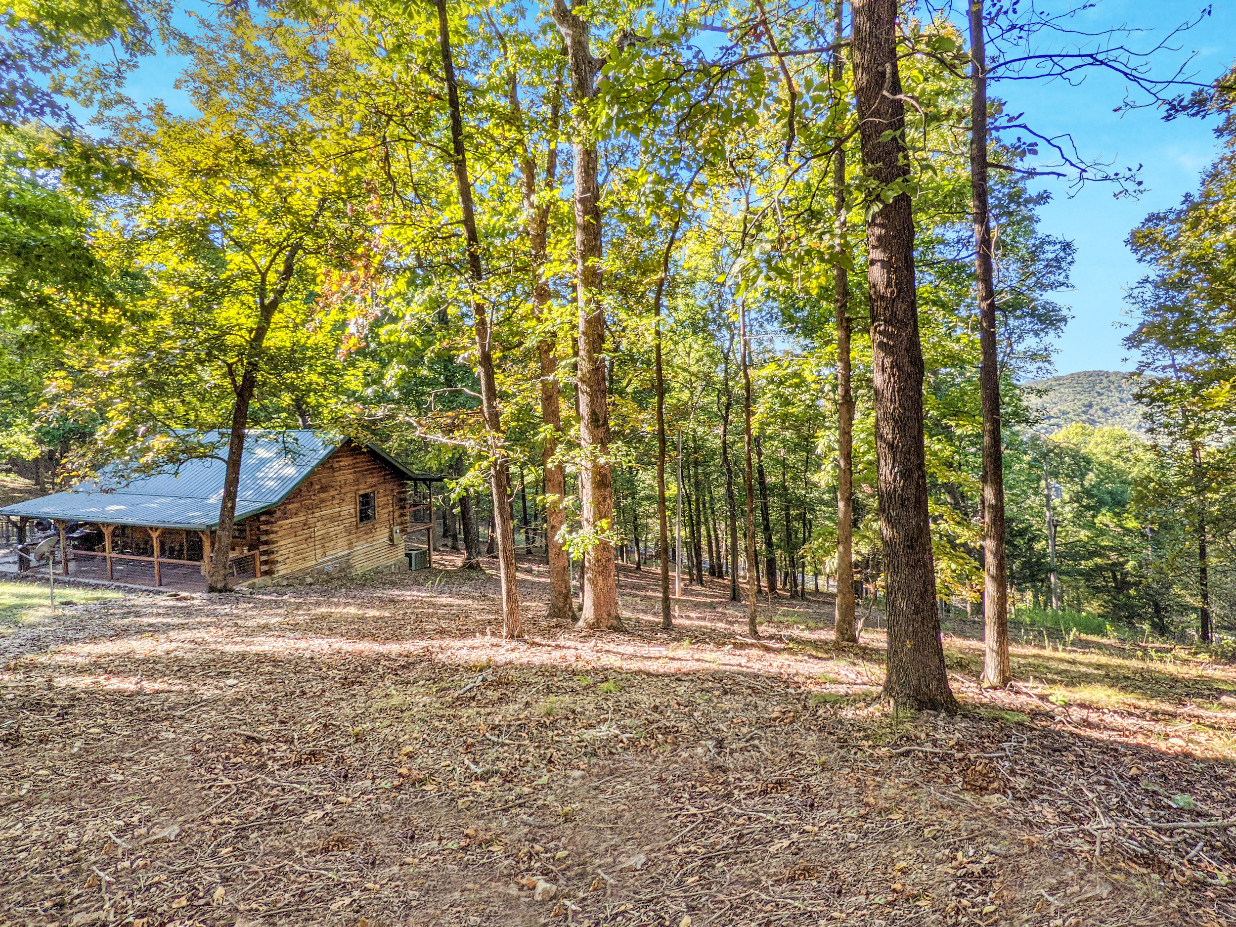 Relax and recharge in total wooded privacy on 25 acres. This is a higher quality offering for our area. The log cabin, furnishings, and fixtures have designer grade charm to ease you into total comfort. It is paved all the way to the covered parking at the door.
