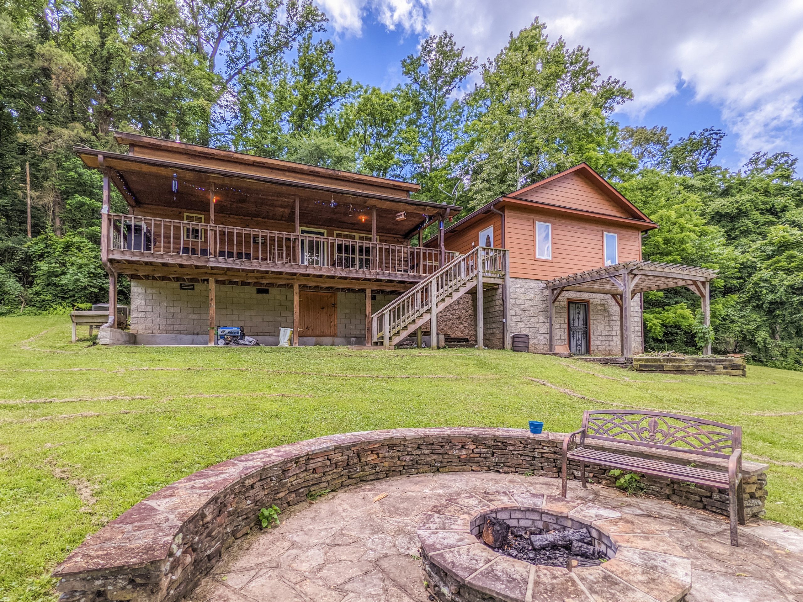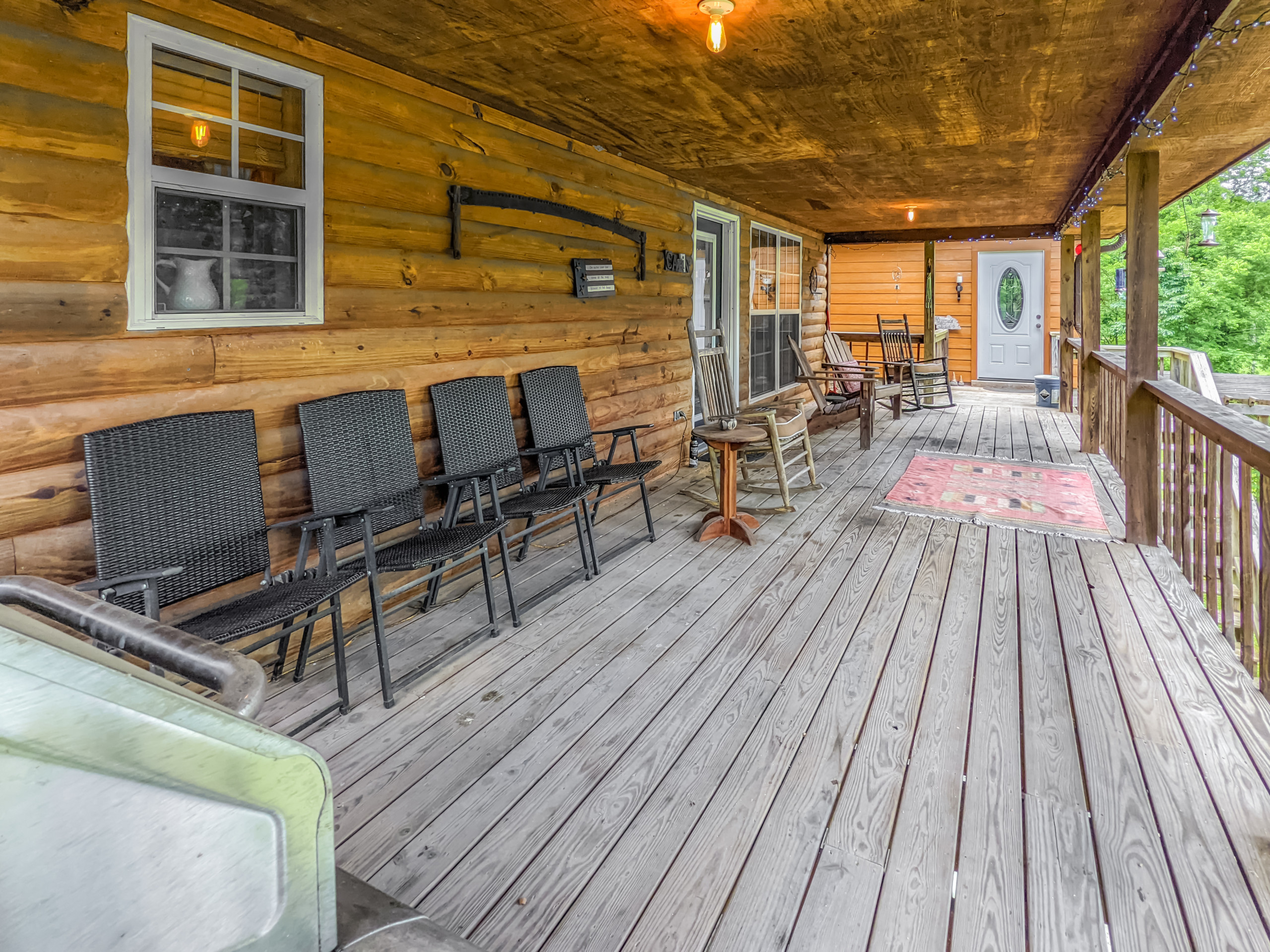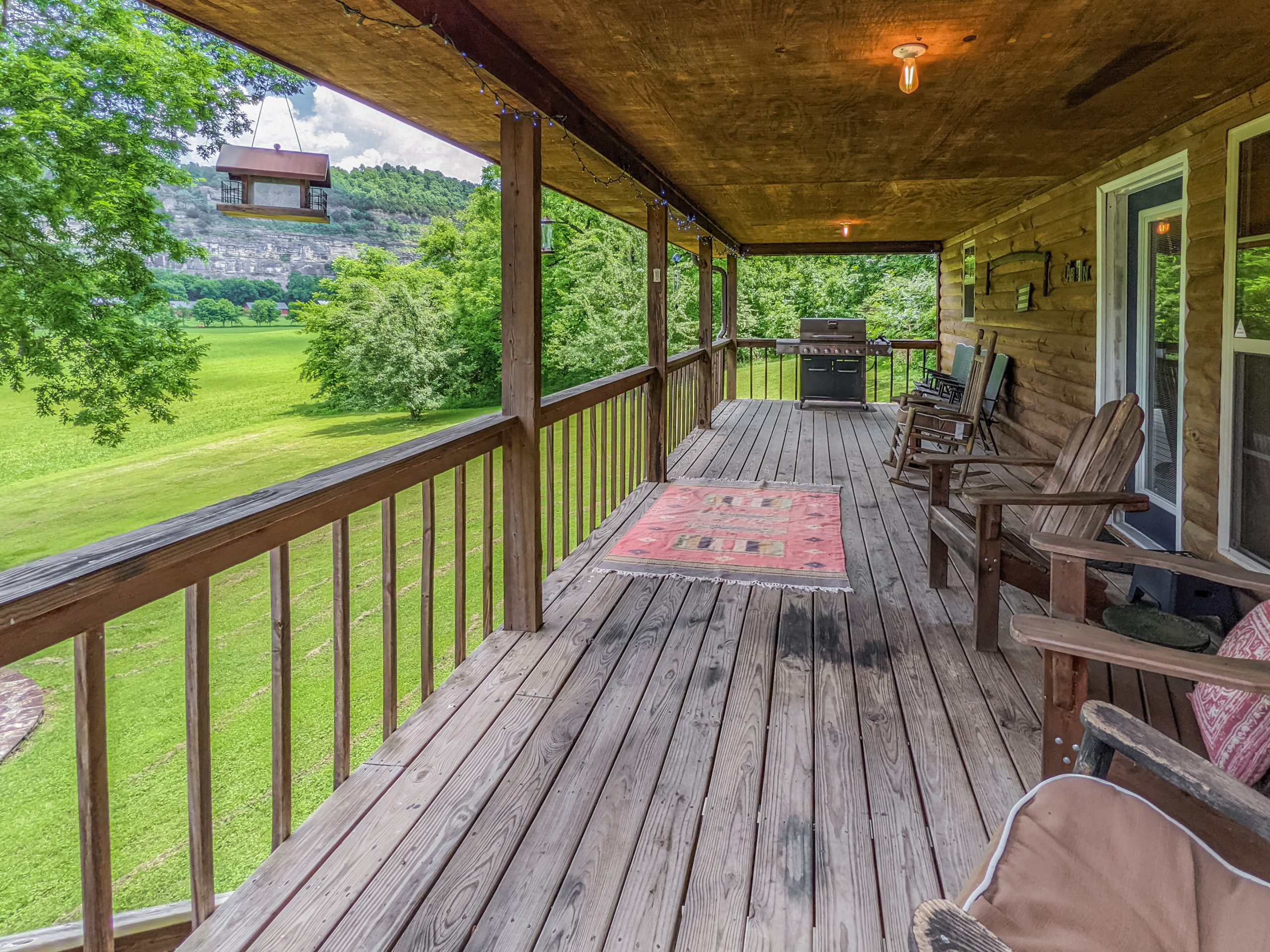 ~ back porch is elevated with an amazing view, variety comfortable seating, and a propane BBQ grill – tanks provided