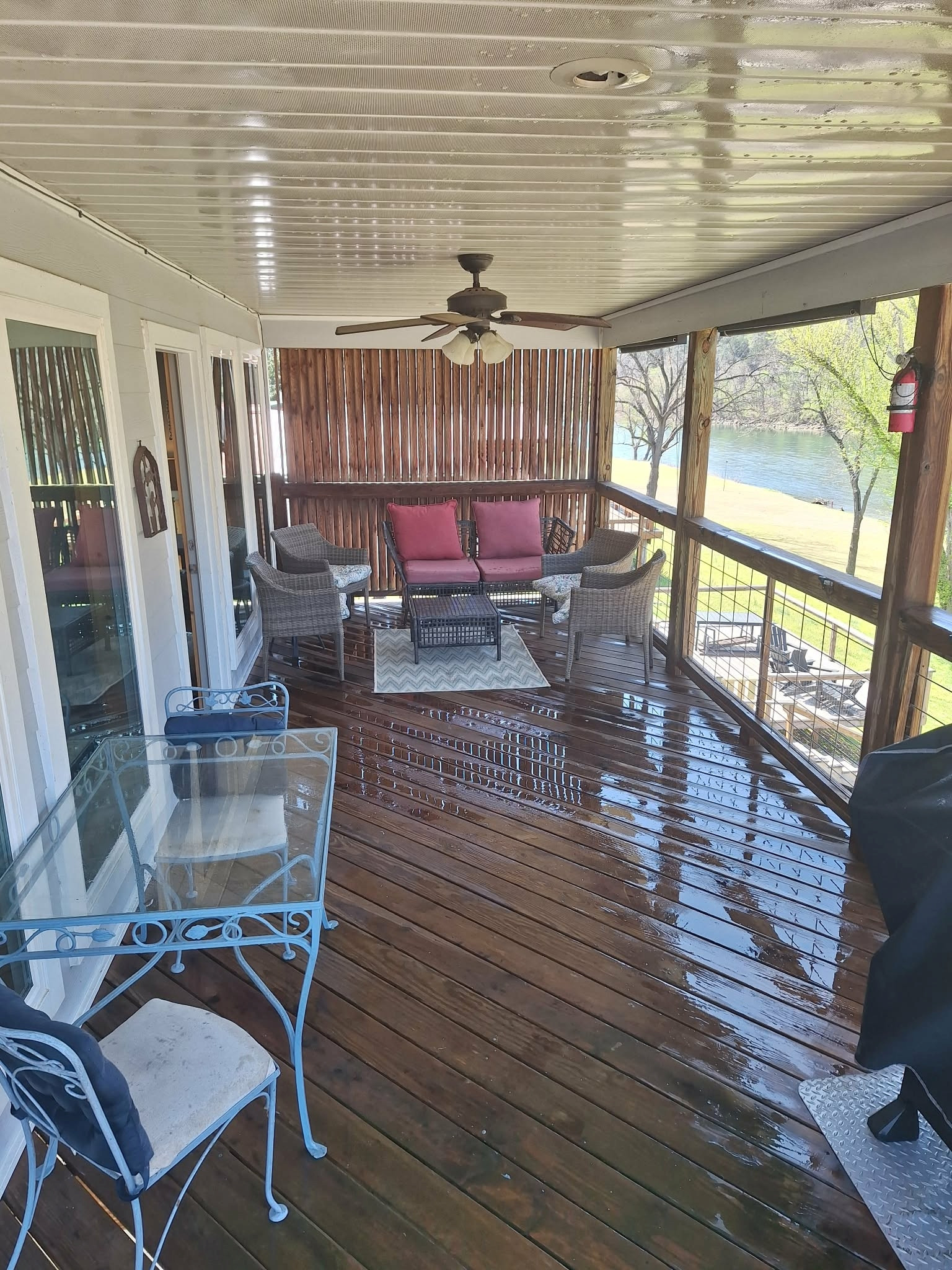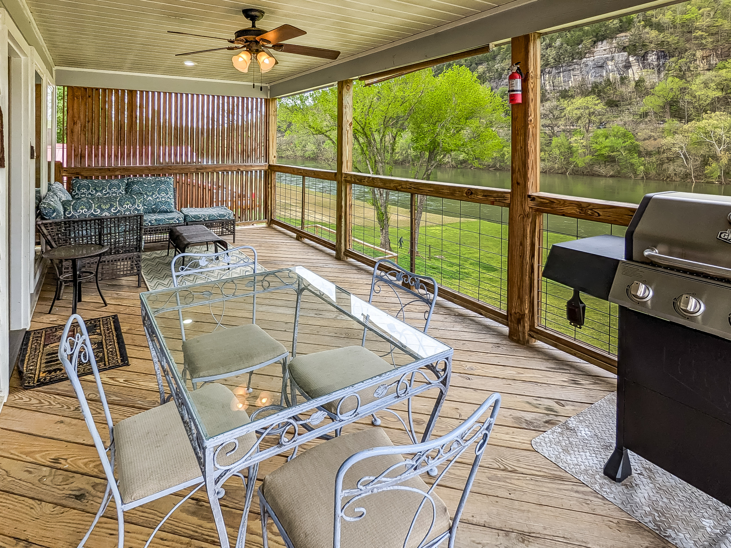 We enjoyed our stay at The Upper Deck property. We especially liked the covered deck with the comfortable seating and view of the river!